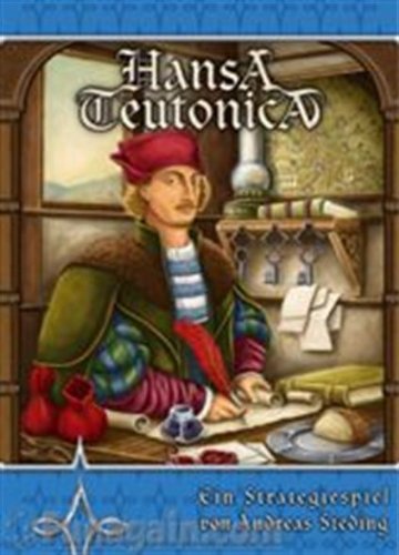Designer Andreas Steding typically releases games through his own MoD Games but for 2009 he'll instead have a design out from Argentum Verlag. Hansa Teutonica will be another take on the Hanseatic League a loose network of cities and guilds that traded amongst themselves from the 13th to the 17th centuries which has previously been ludically transformed in games like Michael Schacht's Hansa and Uwe Rosenberg's BohnHansa [AKA Bean Trader]. In Hansa Teutonica players are merchants in the League who are trying to increase their reputation either by being represented in cities building a network that connects cities collecting bonus markers or having other traders use your holdings. As players improve their traders they can benefit in different ways: earning the right to take more actions earning more money taking a larger share of the prestige points and so on. These values are tracked on a player's personal desk with the higher values in each area being revealed as the improvements are made. The gameboard is double-sided with one side for 2-3 players and the other for 4-5.