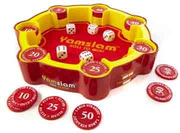 Calculated risk and smart strategy will place the odds in your favor. Roll the dice and choose those that will get you the best results. Each combination has a different point value but only 4 corresponding chips, so get the best ones before they run out! Race your friends to the special bonuses and keep the suspense rolling until the end with Yamslam!